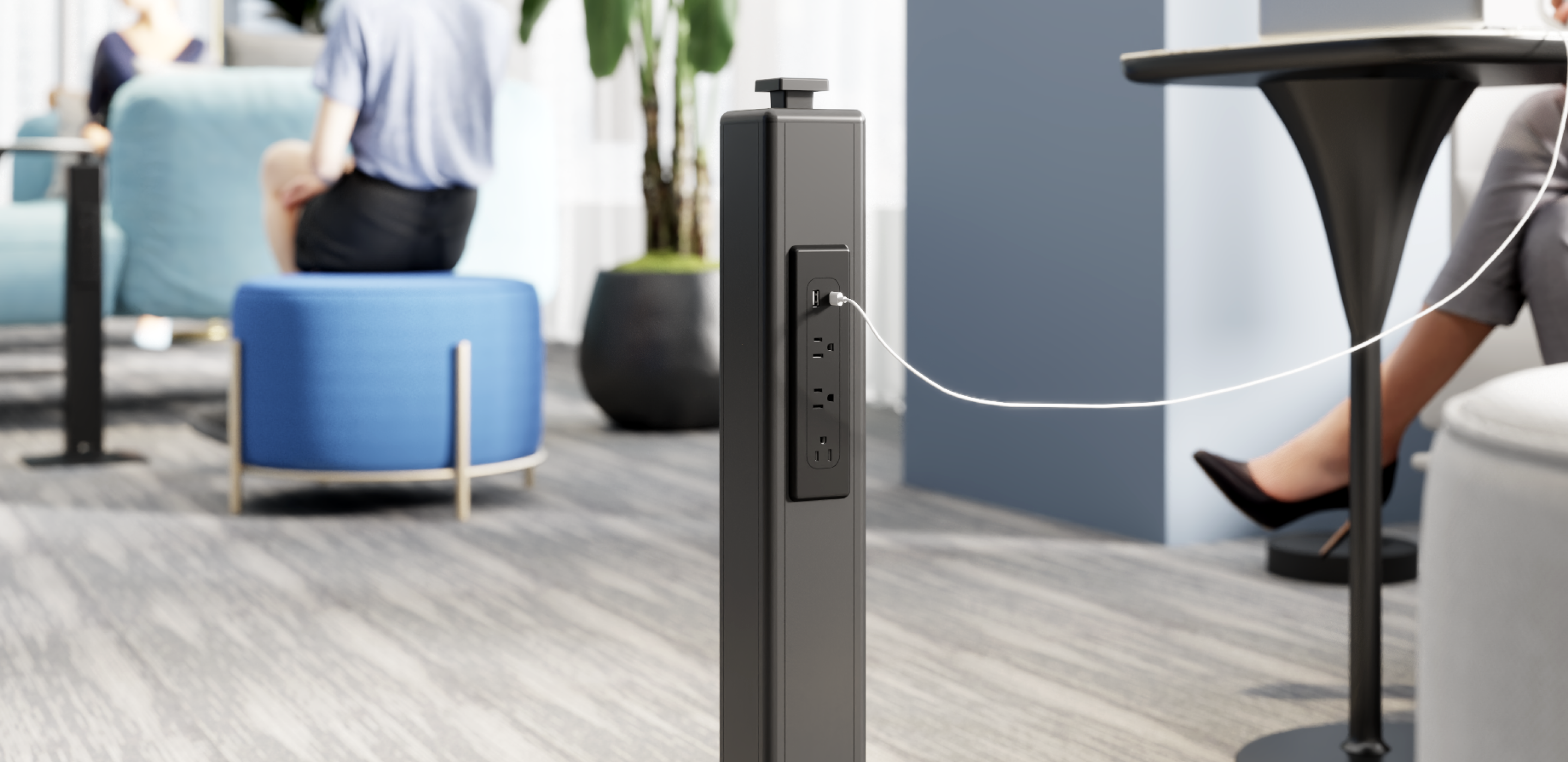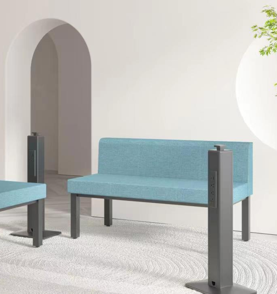 offers flexible options ranging from single-sided to four-sided setups, paired with decorative tabletops. This design enhances the overall mobile charging experience.