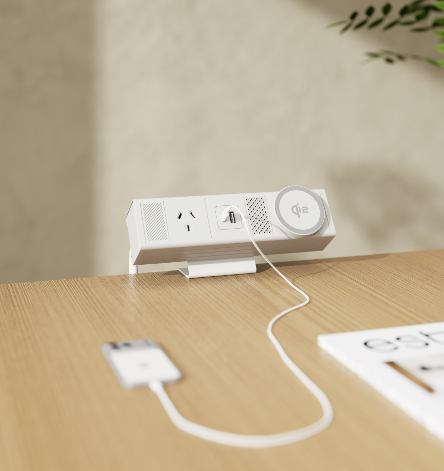 RIKONG® keeps meetings flowing. Crafted from precision aluminum profile and heat-resistant ABS, it brings modern sophistication to conference tables and collaborative spaces. Modular by nature, RIKONG® allows flexible configuration of ports and modules—tailored to your meeting needs. Equipped with 65W USB-C fast charging, Qi2 wireless charging, Ethernet, and HDMI ports, it keeps every device connected and powered—ensuring smooth presentations and productive discussions without interruption.