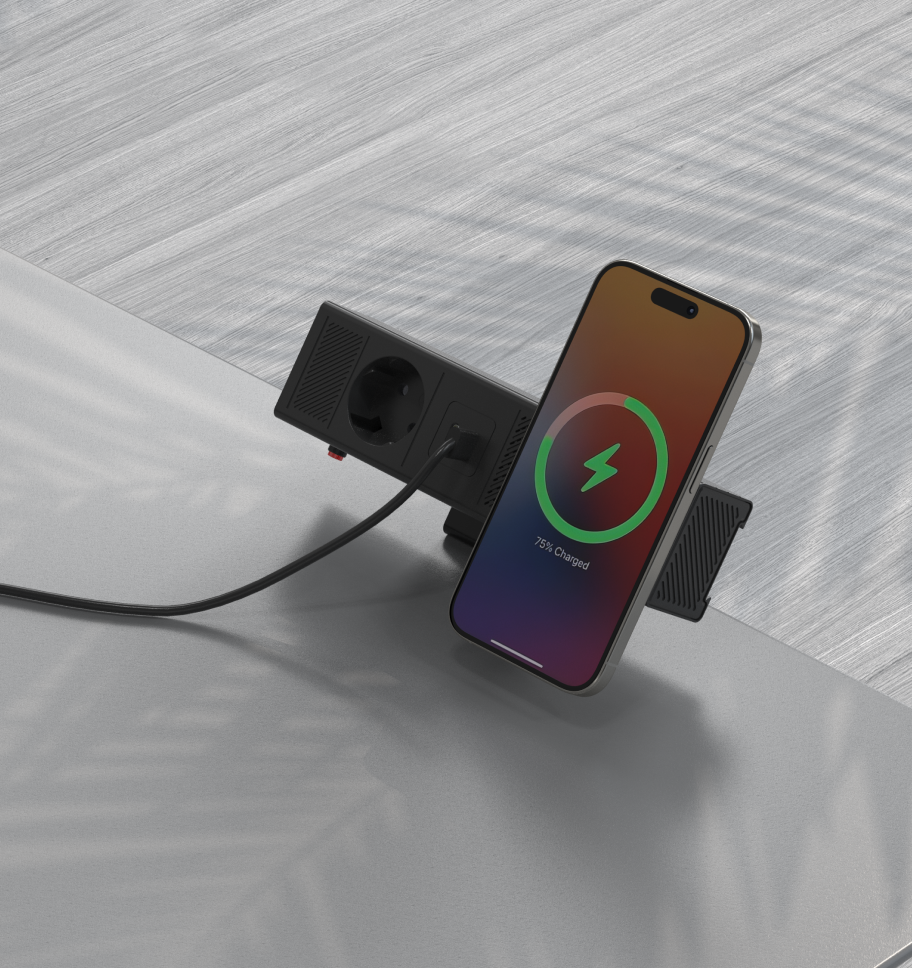RIKONG® keeps meetings flowing. Crafted from precision aluminum profile and heat-resistant ABS, it brings modern sophistication to conference tables and collaborative spaces. Modular by nature, RIKONG® allows flexible configuration of ports and modules—tailored to your meeting needs. Equipped with 65W USB-C fast charging, Qi2 wireless charging, Ethernet, and HDMI ports, it keeps every device connected and powered—ensuring smooth presentations and productive discussions without interruption.